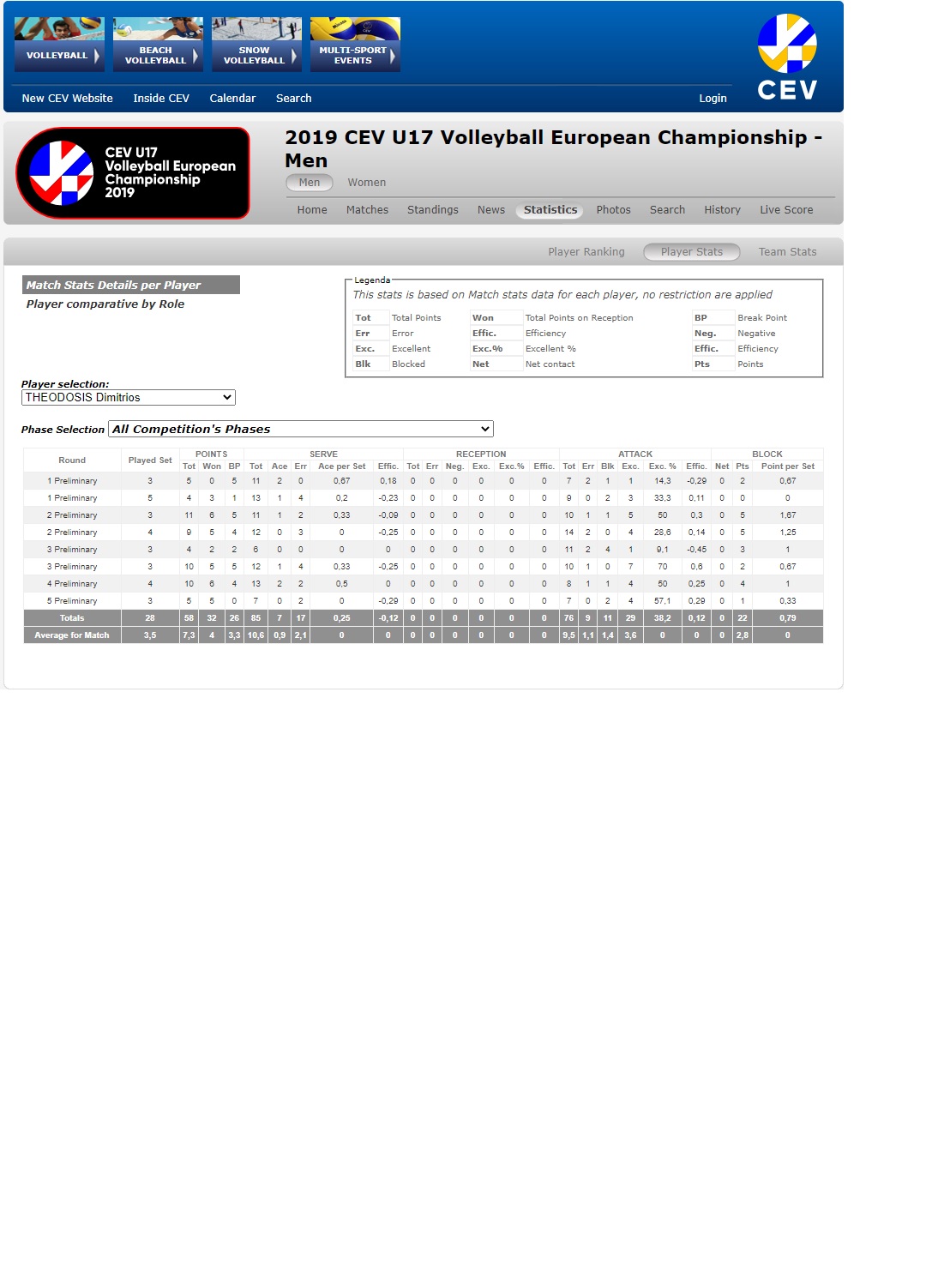 2019: 3rd Best Blocker in efficiency CEV U17
